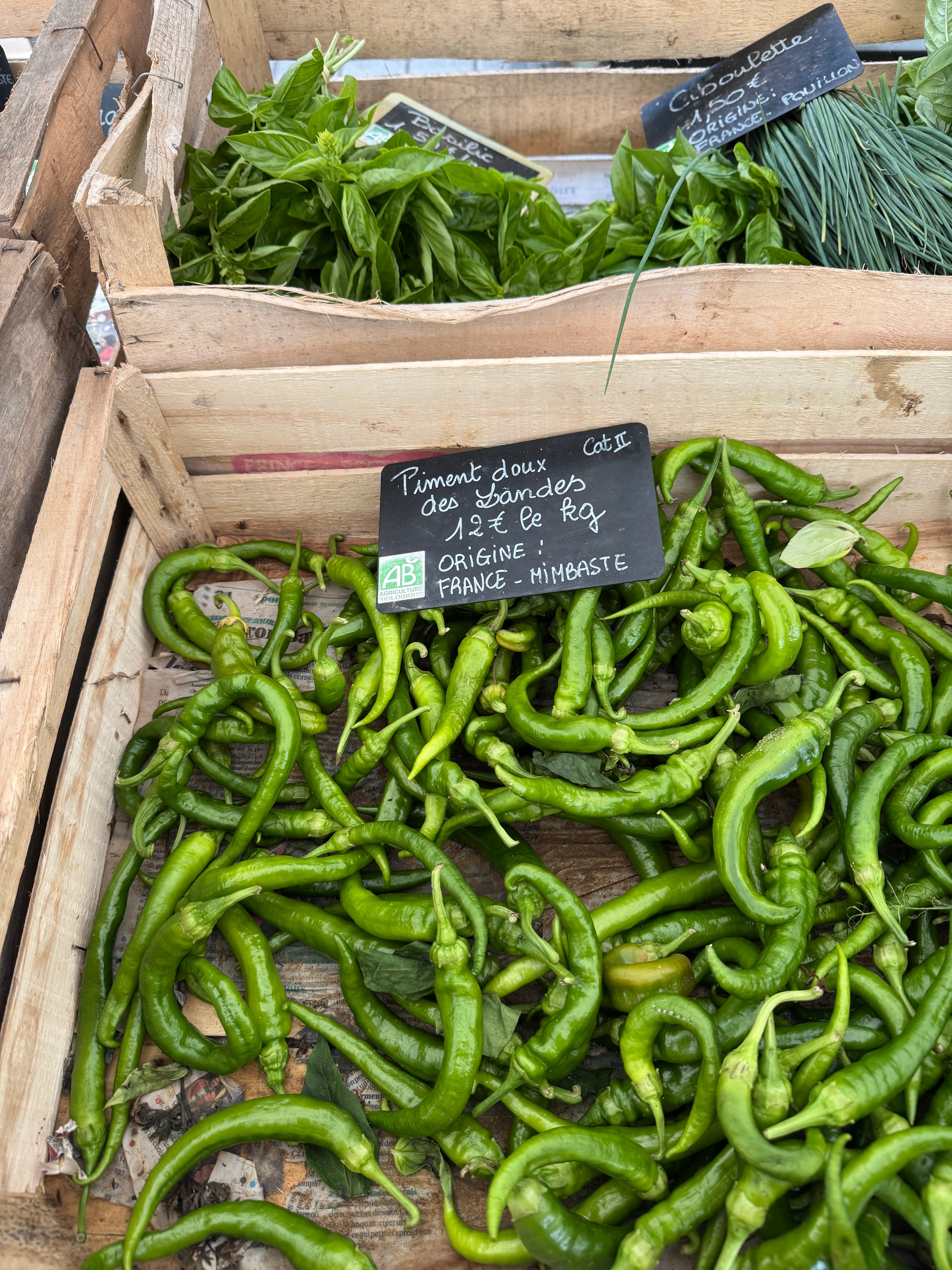🫑 Peppers – The last of the season, Basque and Béarnaise peppers still appear glossy and bright in the markets. Wonderful charred with a lick of olive oil and coarse salt or pickled for apéro snacks.