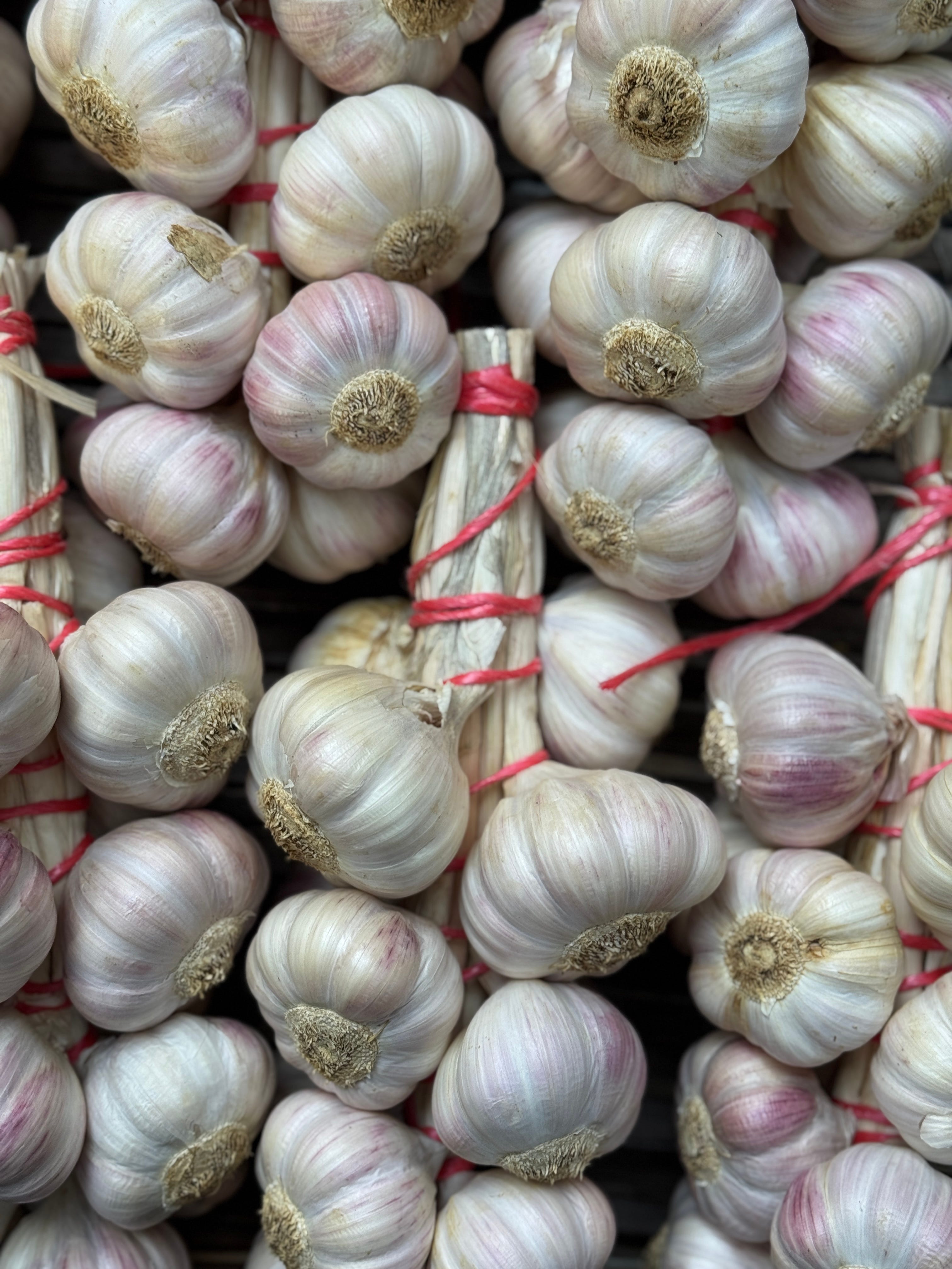 🧄 Garlic & Shallots – Still abundant, their flavour now concentrated and preserved on purple trusses. I hang mine by the stove, ready to pluck and rub across warm toast spread with mashed avocado for breakfast, roast whole or drop into a bubbling pot of soup.